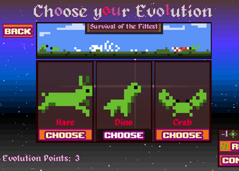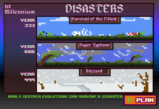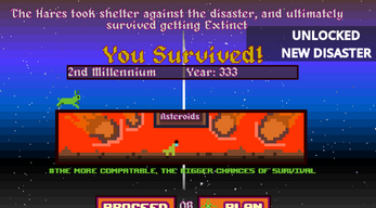 This game needs you to choose carefully on what creature you want to EVOLVE for the DISASTER you are about to face, you will have to learn to adapt again and again, as time marches forward you have to as well, because if you don't you will be left behind and all of your species will be EXTINCT so does your progress as well.